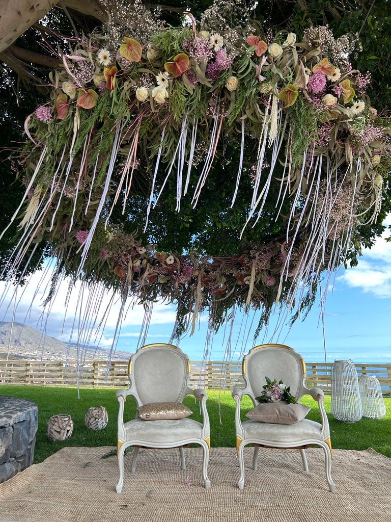 Diseñamos la decoración floral del momento más simbólico de la boda, adaptándola al entorno y al estilo del enlace.